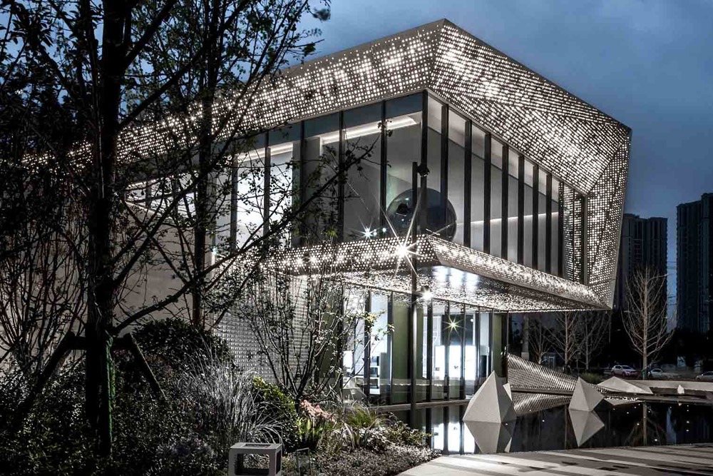 Perforated facades were a way for designers to incorporate visual drama and brand storytelling. The lighting was also designed very carefully to provide a dynamic and high-end image behind the metal surface to reinforce the iconic image of the store.